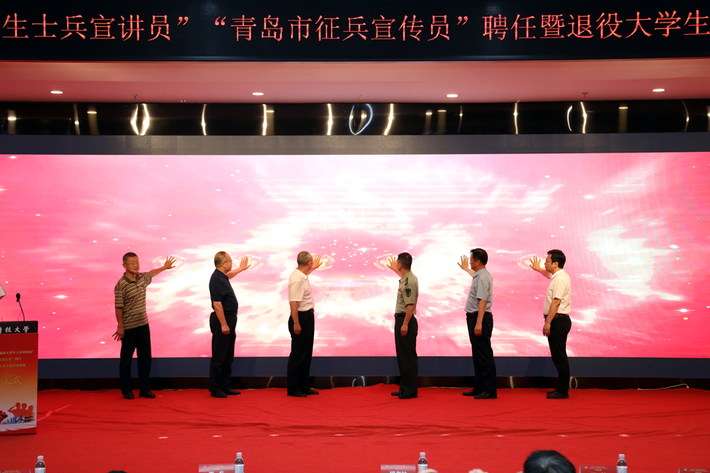 青岛市委宣传部、教育局、共青团青岛市委、驻青各高校征兵工作站、各区(市)征兵办公室相关负责同志,学校相关部门负责人、各学院(校区)分管学生工作副书记,老兵宣讲员代表、退役大学生士兵代表及部分学生代表参加活动。