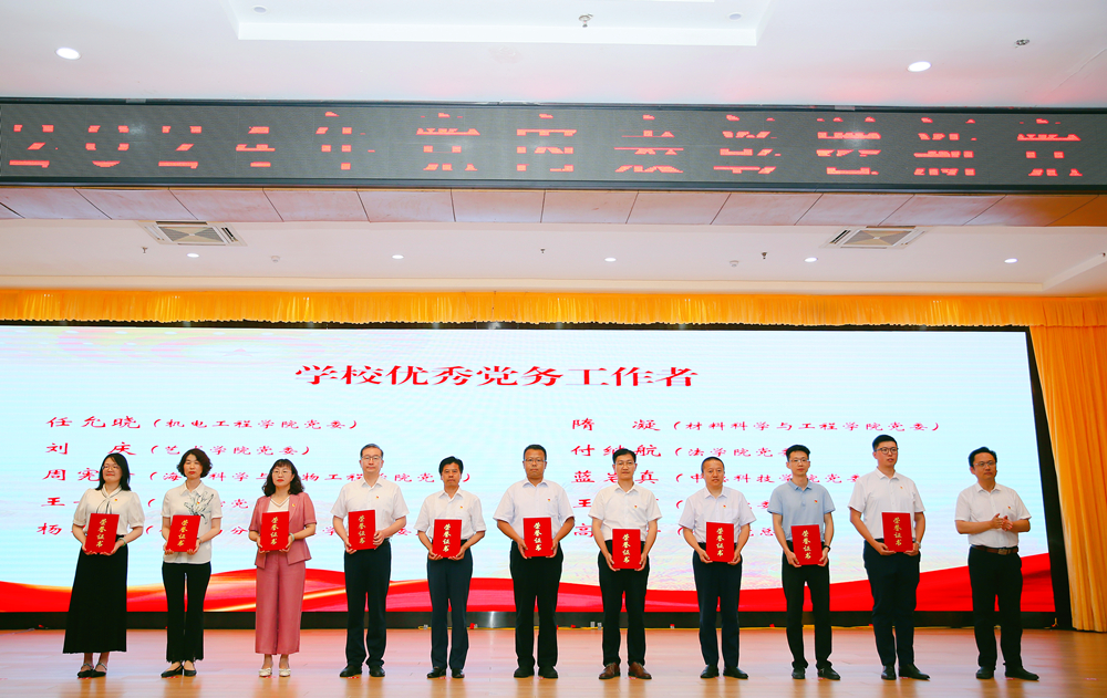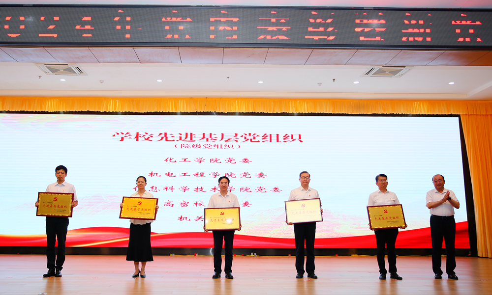 李勇宣读了表彰文件并为学校先进基层党组织颁奖,张洪坤、秦姣分别为优秀党务工作者、优秀共产党员颁奖。会上,党委学生工作部部长王丽为新发展党员代表赠送了党章等学习资料,组织部相关负责同志宣读了新发展党员名单,全体新发展党员进行了集体宣誓,在场老党员重温了入党誓词,学生党员代表进行了发言。