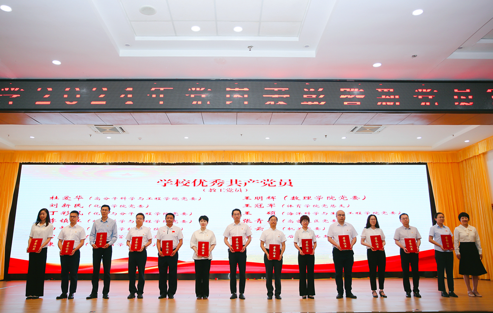 为庆祝中国共产党成立103周年,6月28日下午,学校在崂山校区第二报告厅隆重举行2024年党内表彰暨新党员宣誓活动。学校党委书记李兴伟出席会议并讲话,为2024年学校获得“光荣在党50年”纪念章的同志颁发了纪念章。党委副书记李勇,原党委副书记、纪委书记徐以光,党委常委、宣传部部长张洪坤,党委常委、统战部部长秦姣出席会议。会议由党委常委、副校长吕万翔主持。