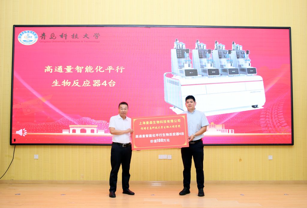 顾玉超介绍了学院的基本情况和发展目标与思路,并代表学院分别与青岛蔚蓝生物股份有限公司、青岛瑞思德生物科技有限公司签订共建合成生物学现代产业研究院、纳米抗体研究联合实验室及科研项目协议。
