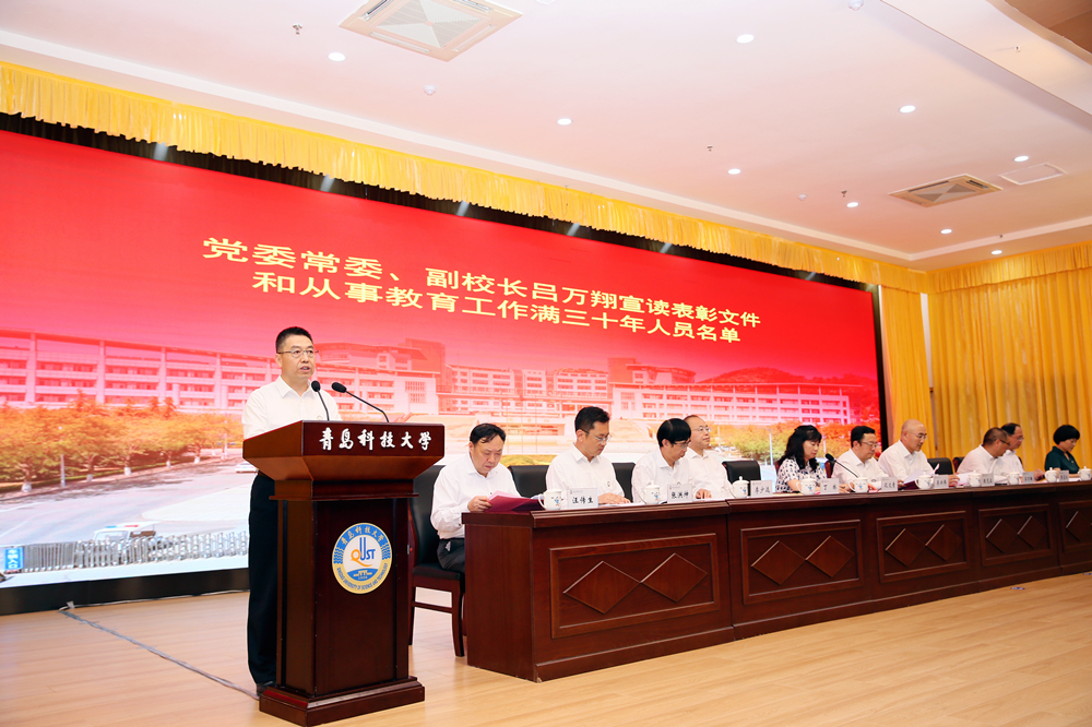 会上,党委常委、副校长吕万翔宣读了《2023年度重要荣誉获奖集体、个人名单》《关于表彰2023年度先进集体、先进工作者的决定》《关于表彰2023年度“教育先锋号”“教育先锋”的决定》《关于表彰2023年度三八红旗手(集体)的决定》《关于表彰第七届“青科大年度人物”的决定》《从事教育工作满三十年人员名单》。
