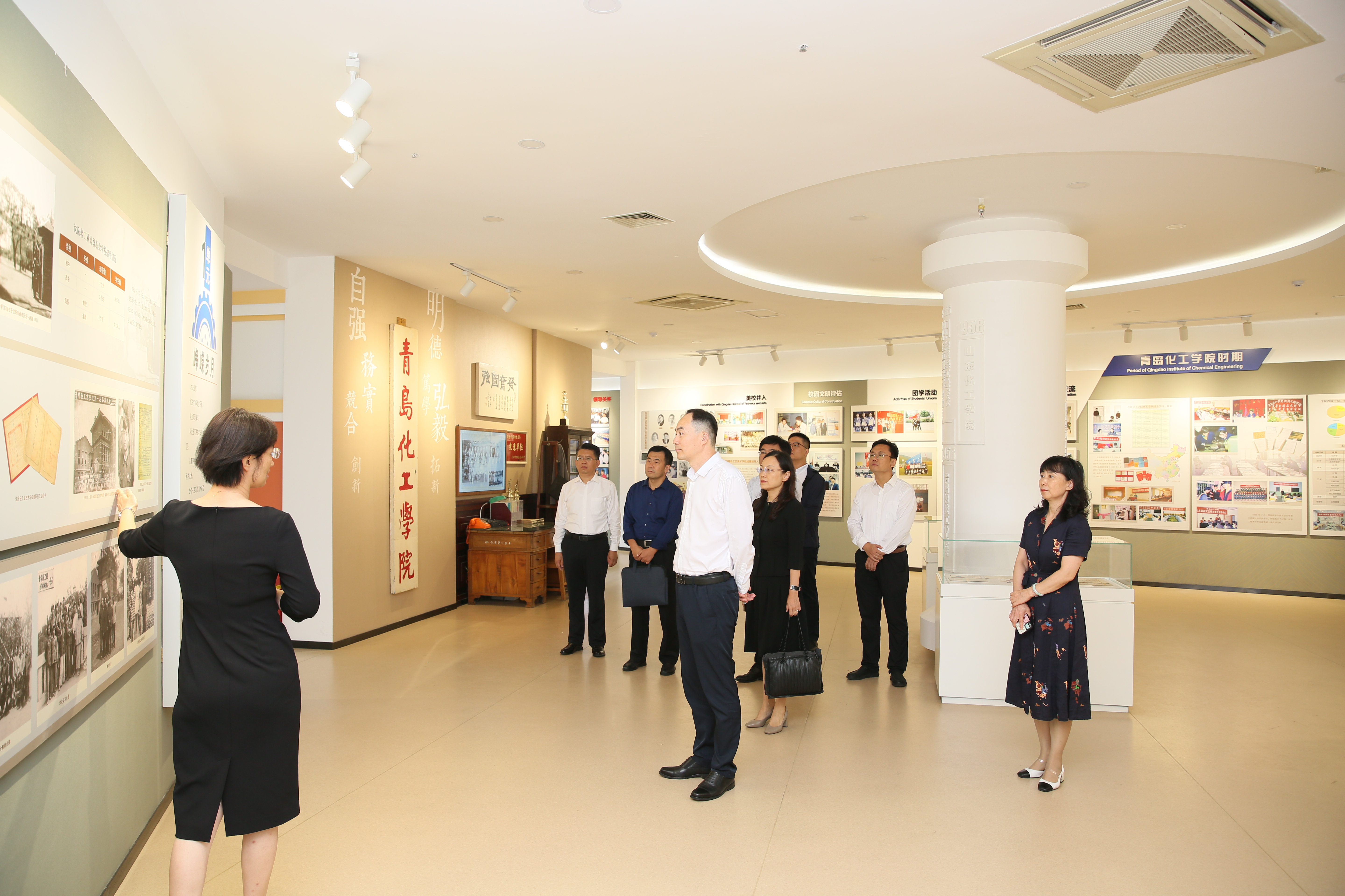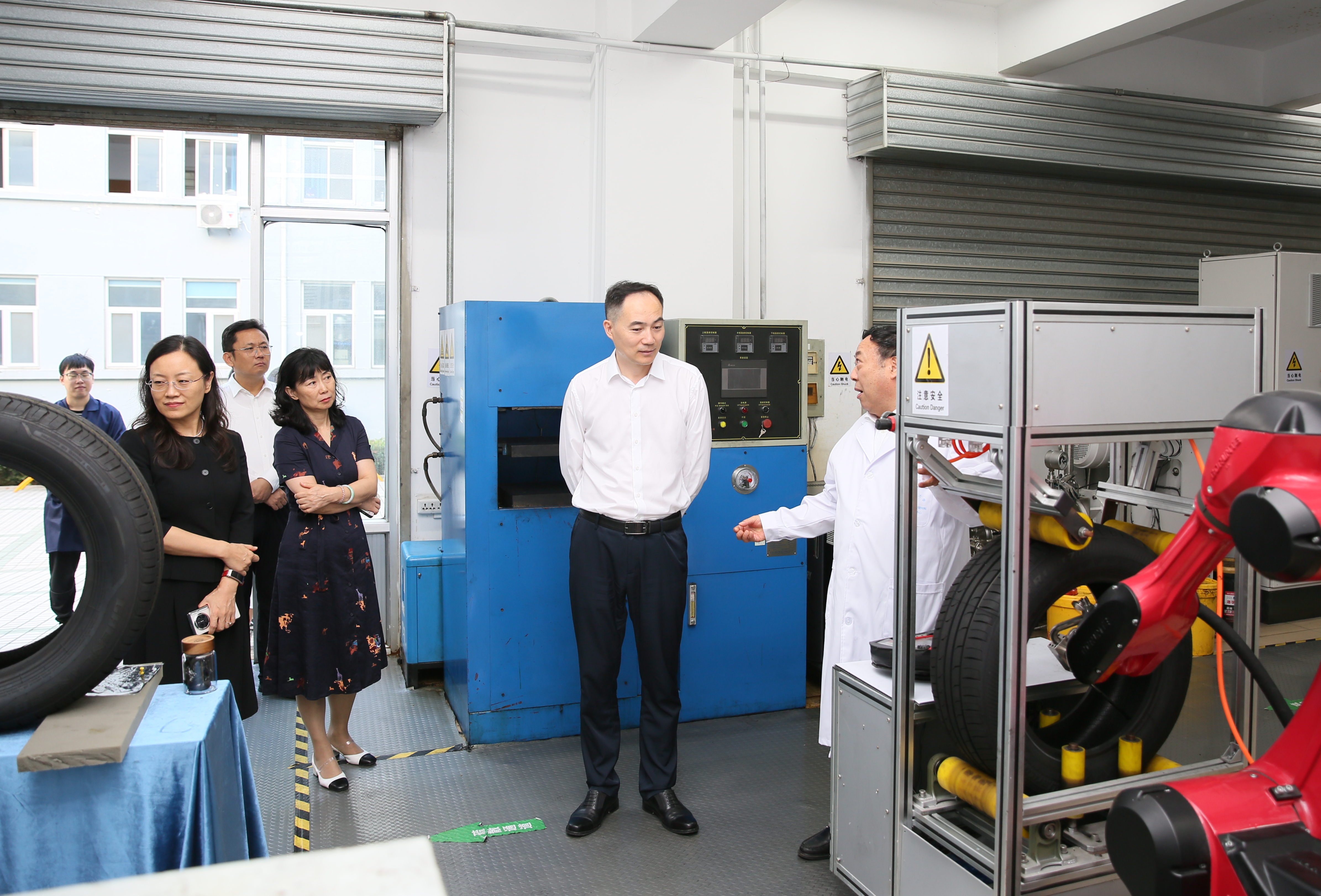 座谈会前,翟刚学一行参观了校史馆、轮胎先进装备与关键材料国家工程研究中心,详细了解了学校办学历史、现状和科技成果转化工作。