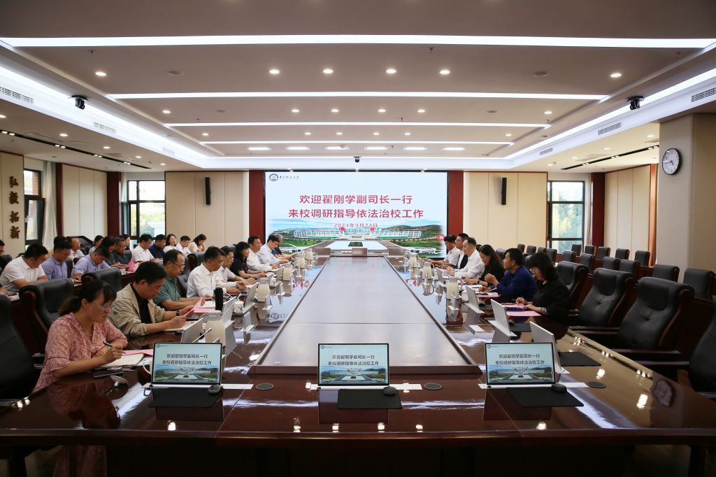 9月24日,教育部政策法规司副司长翟刚学,山东省委教育工委委员、省教育厅党组成员、副厅长李鹏,青岛市教育局副局长韩东等到校调研指导依法治校工作。学校党委副书记沈文青,党委常委、宣传部部长张洪坤陪同调研。