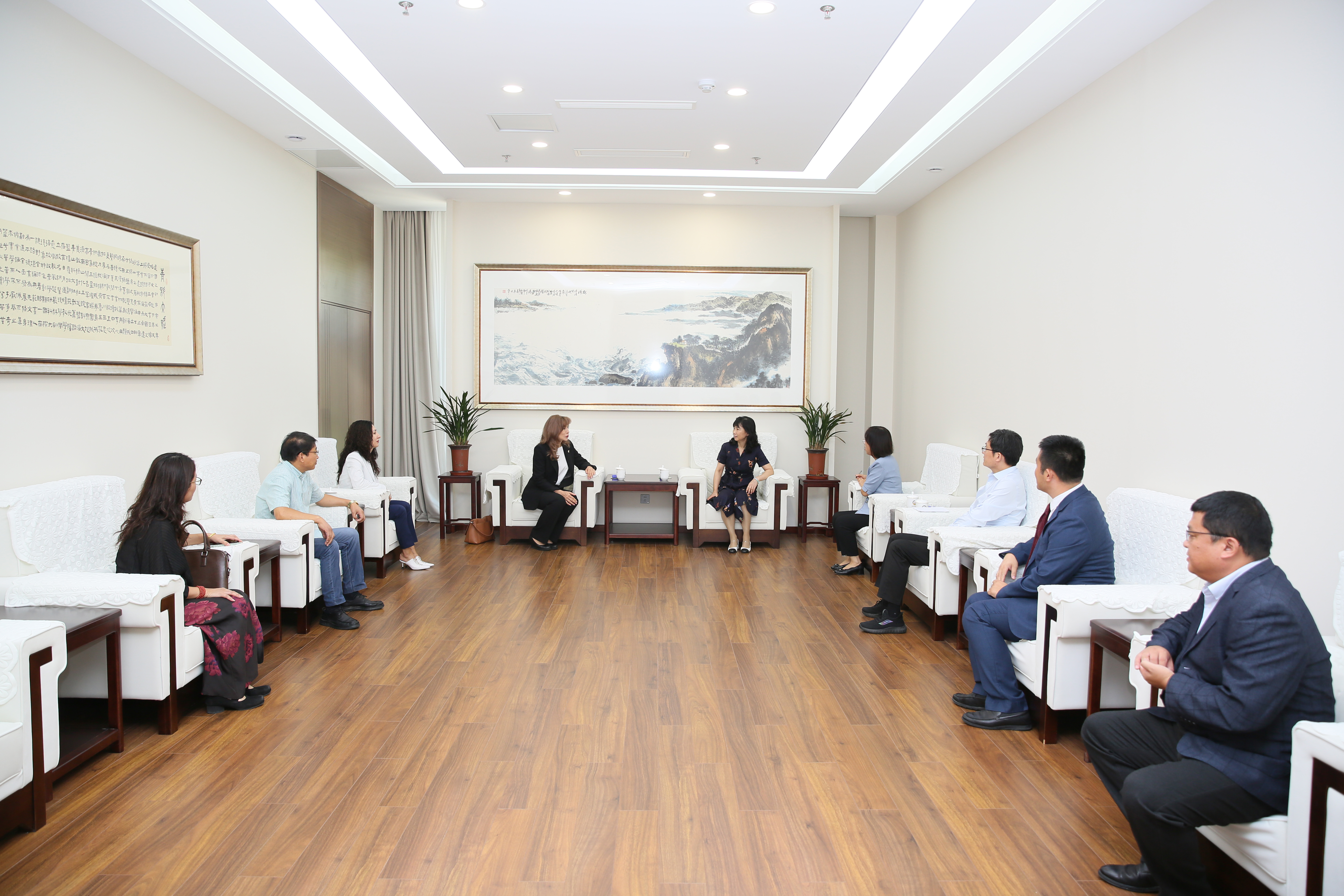 党委(校长)办公室、国际处、国际学院、外国语学院、图书馆等相关职能部门和学院负责人参加会谈。