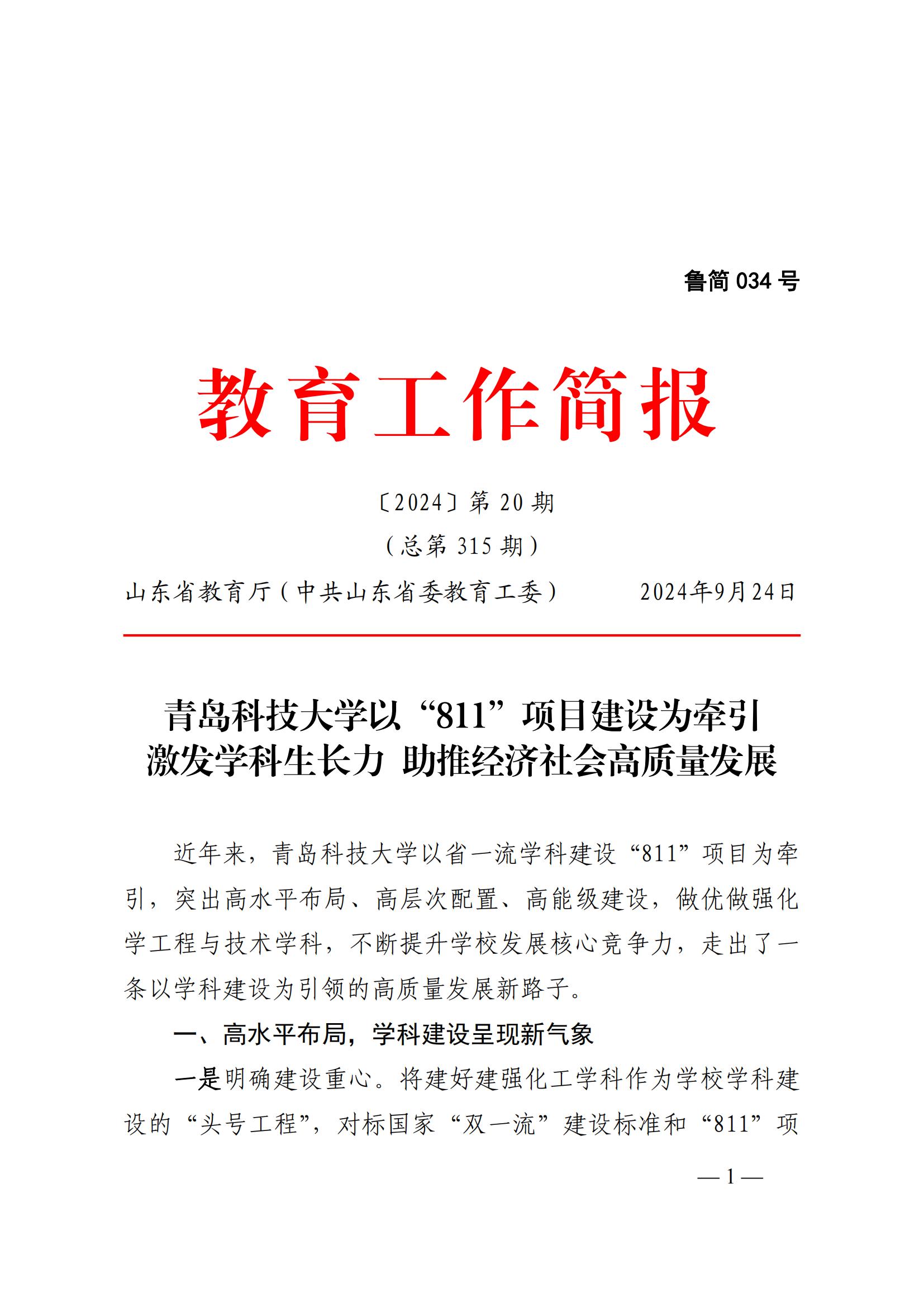 日前,山东省教育厅《教育工作简报》(第20期)刊发了学校典型经验做法,全文如下: