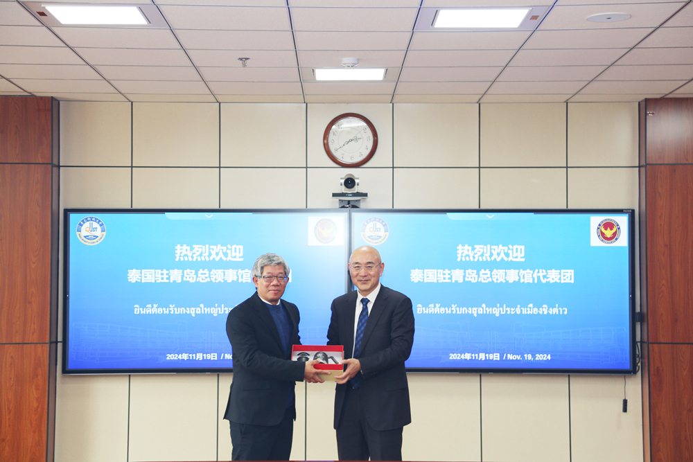 11月19日,泰国驻青岛总领事馆总领事商唐一行来访。校长陈克正会见并座谈,党委副书记沈文青主持会议。