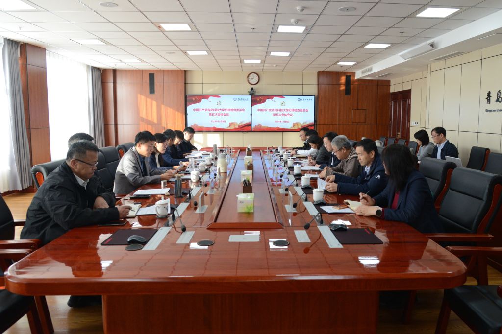 12月6日上午,中国共产党KY开元集团官网纪律检查委员会第五次全体会议在崂山校区综合服务楼6015会议室召开。学校党委常委、纪委书记、省监委派驻监察专员李萍主持会议并讲话。学校纪委委员参加会议,专职纪检监察干部列席会议。