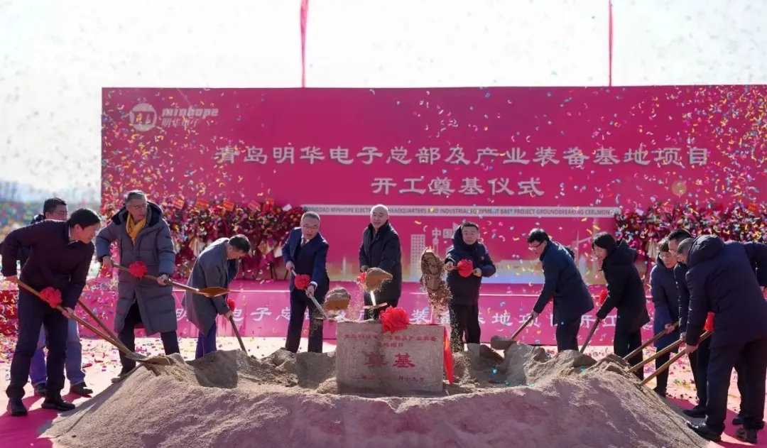2月19日,明华电子总部及产业装备基地项目开工奠基仪式在青岛市城阳区举行。校长陈克正受邀出席活动,并与城阳区委书记吕鹏、区领导甘荣,青岛明华电子仪器有限公司总经理窦灏,副总经理、学校2004届自动化专业校友丁万生等领导嘉宾共同为基地奠基培土。