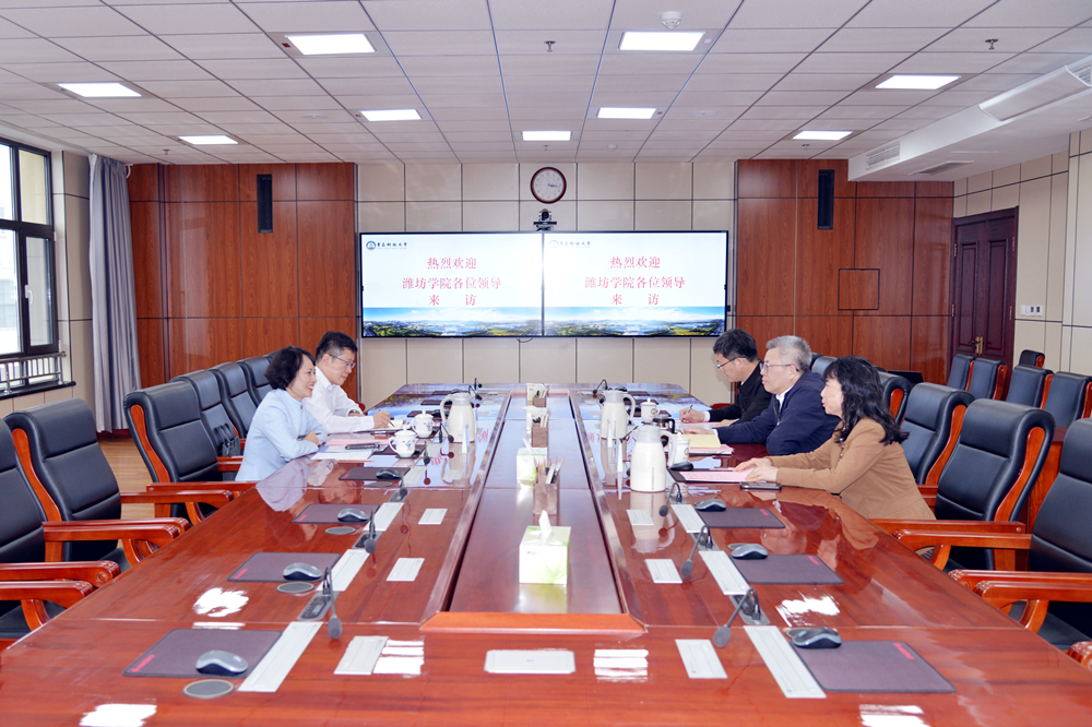 5月14日下午,潍坊学院党委书记徐梅一行来校座谈交流。学校党委书记杨天梅、党委副书记沈文青出席会议。