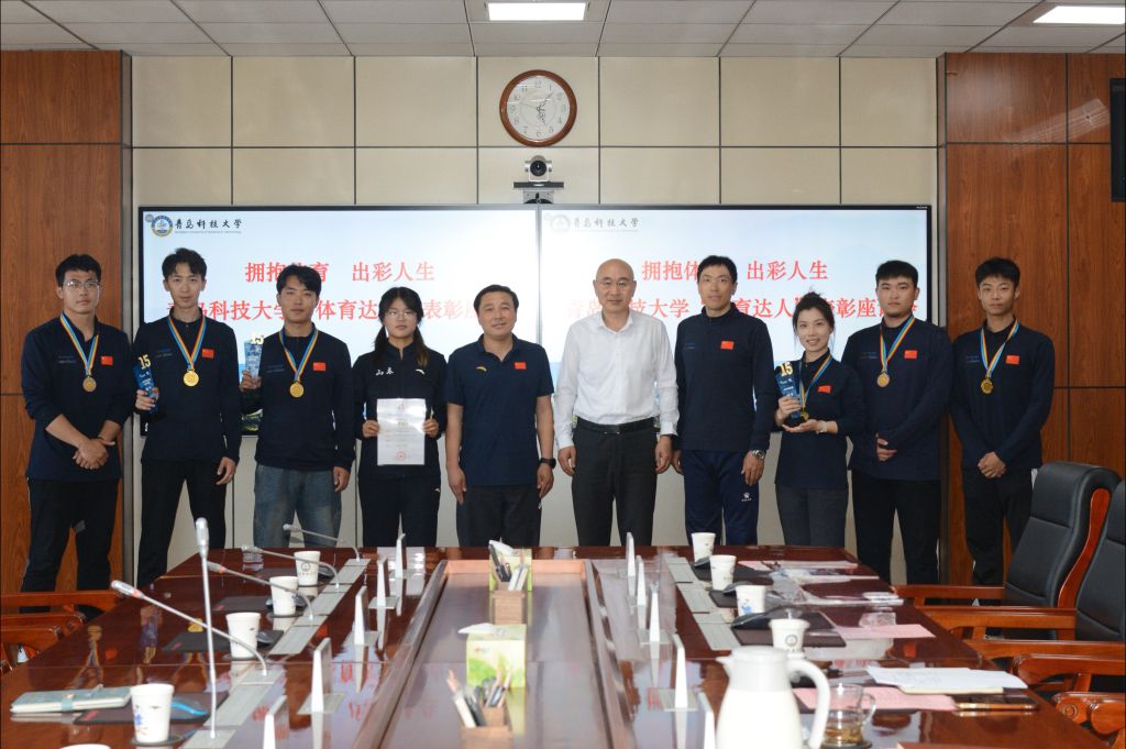 陈克正向获得第十五届全国运动会无线电测向项目女子团体冠军和2025年城市俱乐部国际帆船赛冠军的教练员、运动员表示祝贺,充分肯定了高密校区和体育学院在体育综合育人工作取得的成绩,回顾了体育综合育人工作的发展脉络,解读了“拥抱体育 出彩人生”理念的内涵。他强调,体育综合育人工作是高校落实立德树人根本任务,促进学生全面发展的重要举措,教务处(体改办)要协同各相关部门,发挥“三平台五结合一体化”运行机制,扎实推进体育综合育人2.0版本工作,强化“五育并举”,持续擦亮“爱体育 兴科大”品牌。他寄语同学们今后要更加刻苦训练、顽强拼搏,争取在国际赛场取得优异成绩,同时在未来的学习与工作中要健康、阳光、文明、向上,拥抱属于自己的出彩人生。