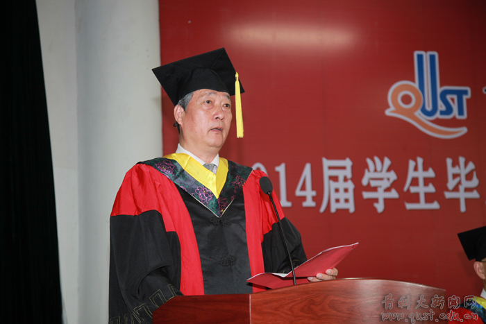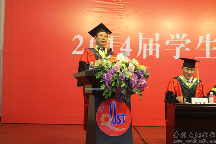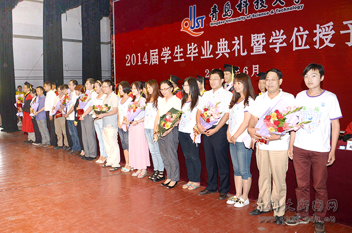 在研究生毕业典礼上,副校长李庆领宣读了2014年校级优秀博士、硕士学位论文获奖研究生及指导教师的表彰决定,副校长刘光烨宣读了校学位评定委员会关于授予博士、硕士学位的决议,副校长张淑华宣读了2014年省级、校级优秀毕业生的表彰决定,副校长韦殿华宣读了第六届学术之星的表彰决定。在高密校区毕业典礼上,副校长王文哲宣读了《关于表彰2014届省级优秀毕业生的决定》。在崂山校区和四方校区毕业典礼上,李庆领、张淑华分别宣读了《KY开元集团官网学位评定委员会关于授予学士学位的决定》、《关于表彰2014届省级优秀毕业生的决定》。主席台就坐的领导、教师代表分别为获奖毕业生和荣获“我最喜爱的老师”称号的教师颁发了证书和奖牌,毕业生代表为获得“我最喜爱的老师”称号的老师献花。在嘹亮的校歌声中,马连湘为博士毕业生、硕士留学生、省级本科优秀毕业生颁发证书,拨正流苏;在主席台就座的领导和教师代表按专业一一给身着学位服的毕业生颁发证书,拨正流苏。