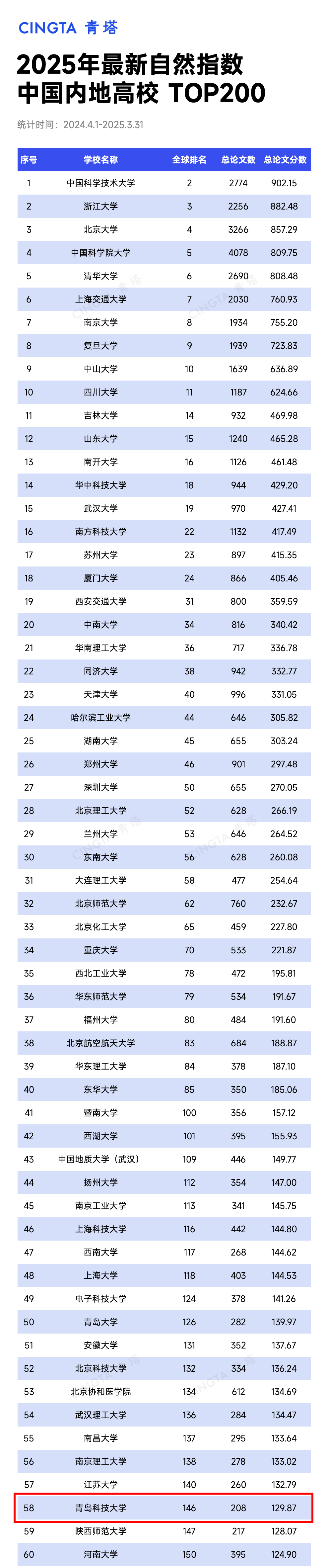 日前,自然指数官网更新了最新的自然指数排名(统计时间节点为2024.4.1-2025.3.31)。在最新的自然指数排名中,KY开元集团官网位列中国内地高校第58位,比上期提升3个名次;位列全球高校第146位,比上期提升32个名次,排名显著提升。