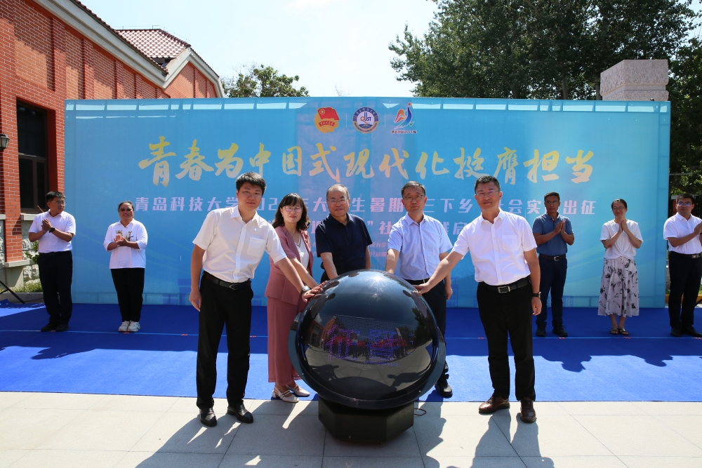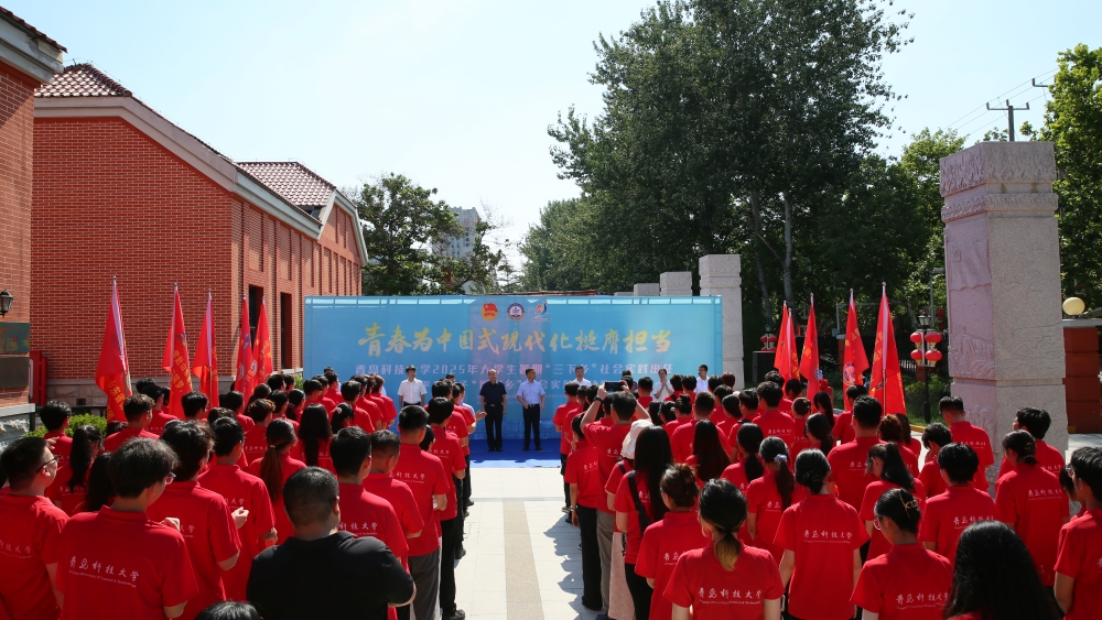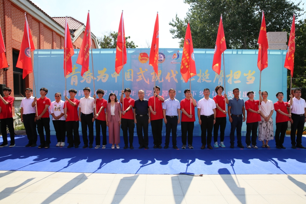 仪式上,与会领导共同启动2025年大学生暑期“三下乡”社会实践活动,并为实践团队代表授旗。校团委书记刘跃宁与共青团平度市委书记张新宇共同为大学生社会实践基地揭牌。校团委副书记李浩介绍了学校2025年暑期“三下乡”社会实践整体安排。蒋科硕作为学校暑期“三下乡”社会实践学生代表发言。