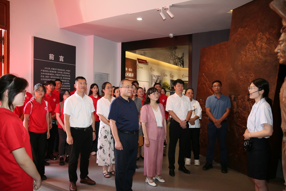 仪式后,与会领导、青年师生共同观摩高分子学院、数据科学学院、传媒学院、化工学院、法学院、经管学院、数理学院、机电学院、高密校区社会实践队的工作情况。