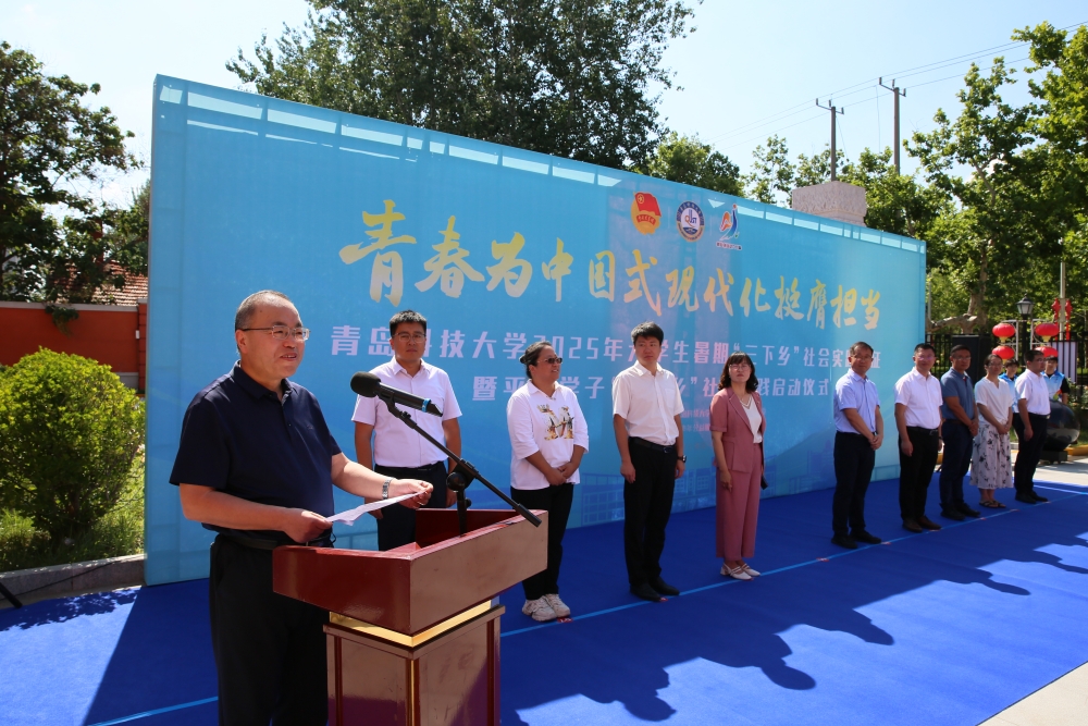 王磊在致辞中表示,此次暑期社会实践活动的启动是校地深化合作育人、共促青年成长的有力举措,为青年学子搭建了一个从校园走向社会、从理论迈向实践的重要平台。这不仅是同学们传承红色基因的“铸魂之旅”、扎根大地读懂中国的“成长契机”,更是青年一代将专业所长与社会需求相衔接、在服务基层中锤炼本领的生动实践。希望同学们以此次出征为起点,珍惜每一次深入基层的机会,真正沉下心、扎下根,以“小学生”的姿态向人民群众学本领,以“实干家”的精神把论文写在祖国大地上,把书本知识转化为服务社会的实际能力,将个人成长融入时代发展洪流,在广阔天地中施展才华、担当作为,让个人成长坐标对接社会发展需求,让书本知识在实践熔炉中淬炼成钢,为平度经济社会高质量发展贡献青春力量。