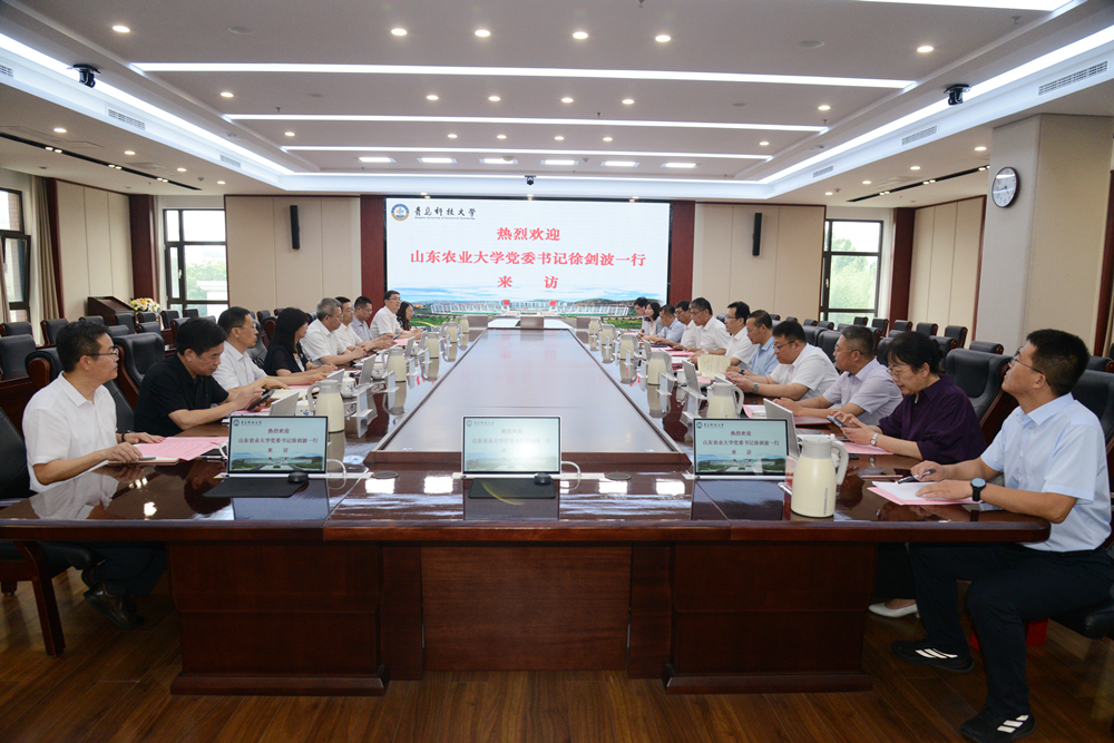 8月13日下午,山东农业大学党委书记徐剑波,党委常委、副校长李广松,党委常委、副校长周玉玺一行来校调研座谈。学校党委书记杨天梅,党委常委、副校长吕万翔,副校长李金红出席座谈会。
