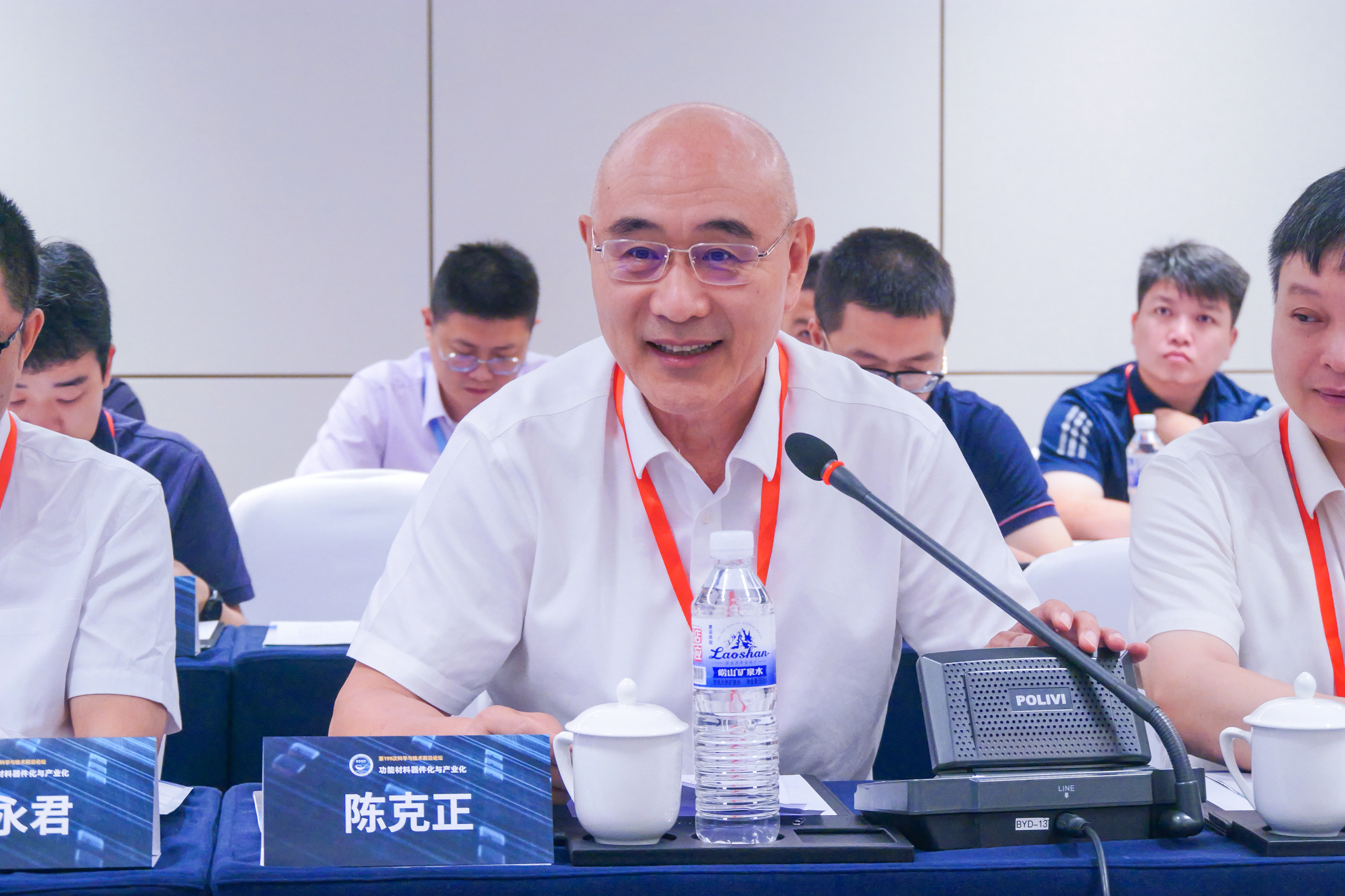 陈克正在致辞中对参会专家表示欢迎,并感谢大家长期以来对青科大的关心支持。他表示,功能材料作为新材料领域的核心,是推动现代高新技术产业发展的关键。近年来,学校锚定“两服务一引领”发展战略,立足化工、材料等学科优势特色,打造高能级科研平台,在推动科技成果转化上取得了显著成果。下一步,学校将持续开展功能材料等领域研究,推动科技创新与产业创新深度融合,打造“青科大模式”升级版。此次论坛搭建了功能材料领域学术交流的广阔平台,希望与会专家学者集思广益、传经送宝,为功能材料器件化与产业化的创新突破注入新动能,助力科技强国建设。
