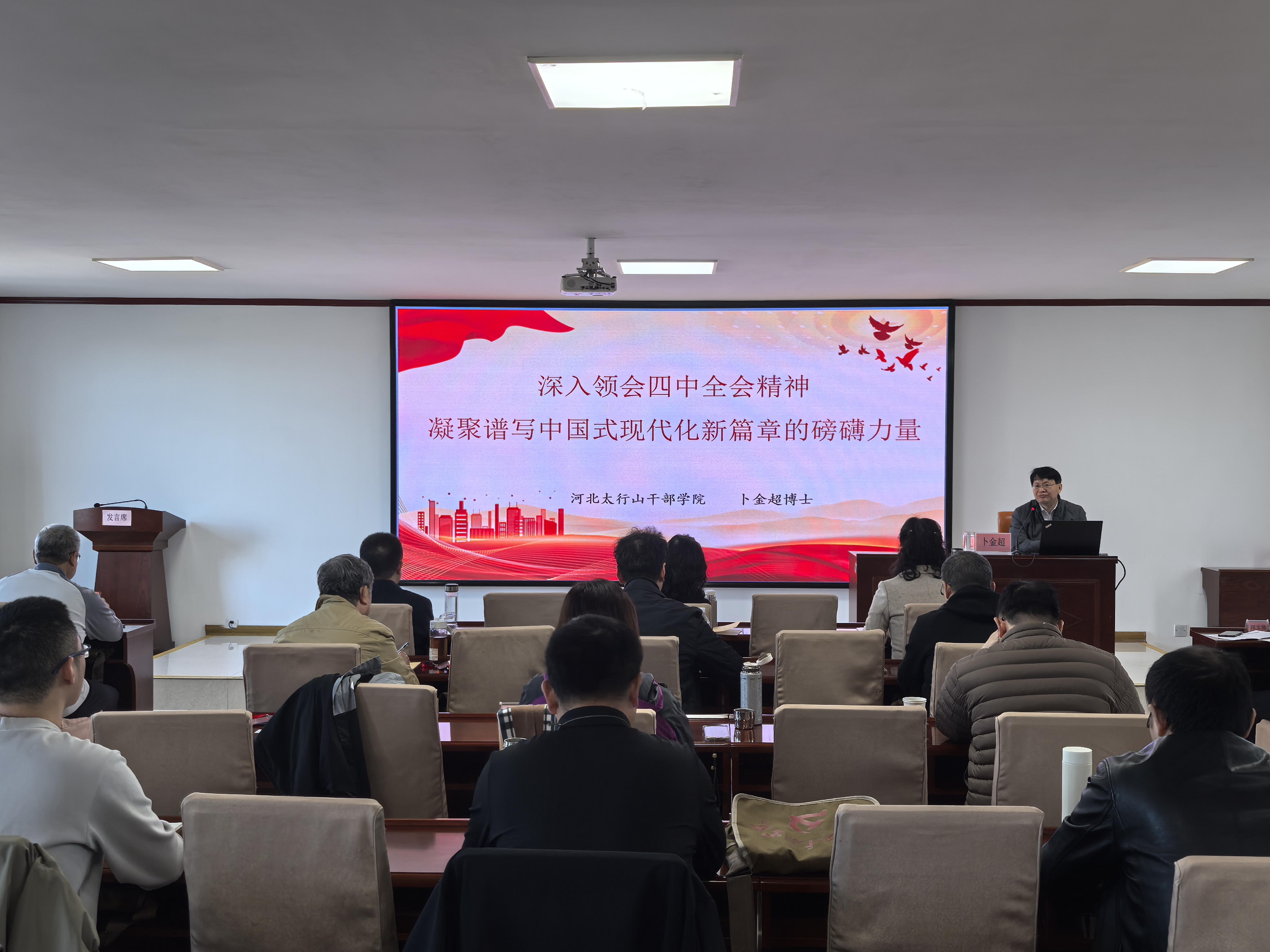 为深入学习贯彻党的二十届四中全会精神,全面贯彻落实习近平总书记关于做好新时代党的统一战线工作的重要思想,10月29日-11月1日,KY开元集团官网统一战线学习党的二十届四中全会精神专题培训班在河北太行山干部学院举办。学校党委副书记沈文青,学校党委常委、组织部部长朱敬义,学校党委常委、统战部部长秦姣,河北太行山干部学院分院副院长高为民出席开班仪式。