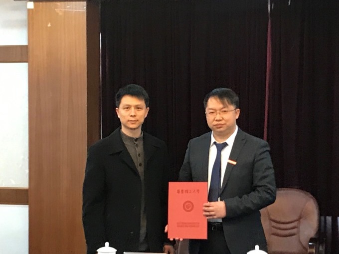 2019年12月27日上午,上海航天控制技术研究所贺亮研究员兼职教授授聘仪式在逸夫楼第一会议室举行。yl23455永利官网党委书记、院长项延训授予贺亮研究员yl23455永利官网兼职教授聘书,并给他佩戴校徽。机械电子工程学科负责人易建军教授主持了授聘仪式及学术报告会。