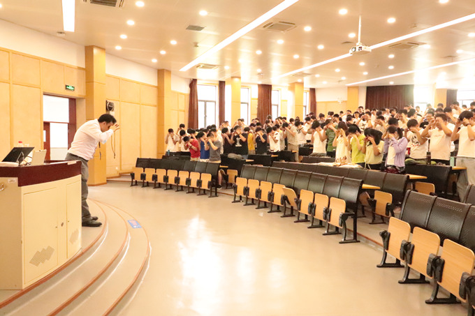 学院高度重视安全工作,在见面会之后安排了新生安全教育讲座,特邀学校安全环保办公室主任、实验室与装备处副处长徐宏勇博士做实验室安全培训讲座。他通过身边案例的分享,就实验室设备的安放使用规范、药品的购买处理,实验过程中的个人防护等进行了详细介绍,从细节处叮嘱同学们要提高安全意识。在讲座过程中,他与大家积极互动,示范并带领同学们进行正确洗眼器操作。