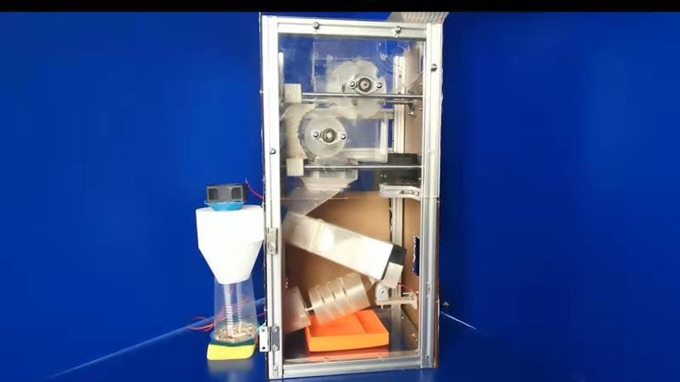 花生葵瓜子作为常见坚果零食,深受人们喜爱,针对目前市面上坚果剥壳机器体积庞大、效率低下、功能单一、脱壳率低、价格昂贵,人工剥壳费时费力的问题,作品设计了一款多功能零食坚果剥壳机,实物样机的运行结果表明该装置具有智能化程度高、效率高、剥壳率高、适用性强、清洁环保等特点。