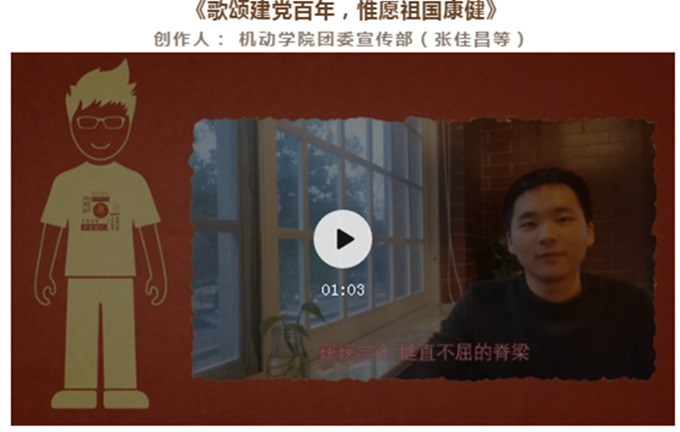 为献礼建党100周年,学院以“献礼建党百年,彰显青年初心”为主题开展了社会实践红色作品征集展示专项活动,依托班级团支部开展小规模、互动式、有特色、接地气的祝福和故事视频征集,力争实现“建党百年”活动全覆盖,着力打通青年爱党爱国教育“最后一公里”。 “初心传承 使命在肩”“青春勇奋进”“我们为党送祝福”等实践团结合学院特色和专业特点录制《百年峥嵘,五星荣耀》《党的故事以及对党的祝福》《探访红军旧地--小源会议旧址》等10余个红色视频,在社会实践中进一步厚植了爱国之情、报国之志。