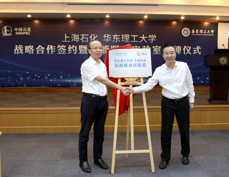 8月27日,yl23455永利官网与中国石化上海石油化工股份有限公司新一轮战略合作签约暨氢能联合实验室揭牌仪式在华理逸夫楼举行。上海石化党委书记、董事长吴海君,总经理管泽民、副总经理黄翔宇、黄飞等,以及华理校长轩福贞,副校长辛忠、李涛等出席签约仪式。签约仪式由李涛主持。