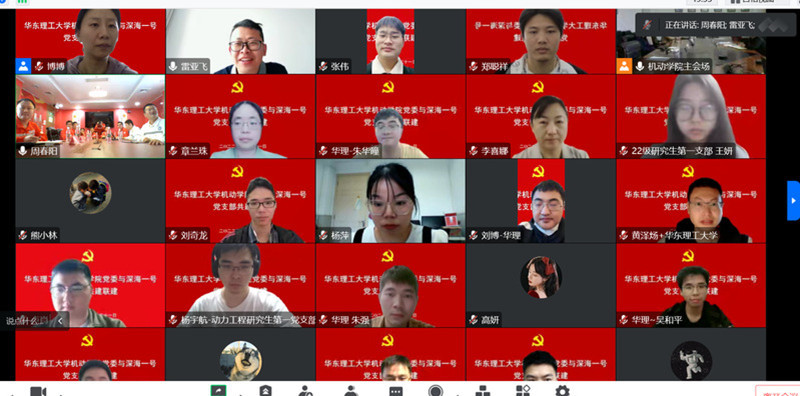 10月31日下午,机动学院党委与中国海洋石油集团有限公司“深海一号”能源站党支部开展了联合共建活动。机动学院党委书记杨强与深海一号能源站党支部书记雷亚飞及能源站支部成员一起,在全球首座十万吨级深水半潜式生产储油平台——“深海一号”上视频连线机动学院师生。机动学院全体党委委员在实验十七楼308会议室,与硕博党支部书记参加了共建活动。活动由“深海一号”能源站党支部党建专员周春阳主持。