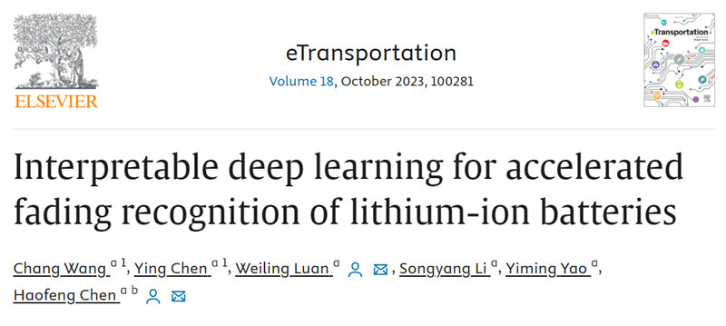 9月4日,我校yl23455永利官网、先进电池系统与安全重点实验室栾伟玲教授课题组与我校国家高层次人才、讲席教授陈浩峰教授合作,在全球交通科学与技术领域顶级期刊eTransportation发表了题为“Interpretable deep learning for accelerated fading recognition of lithium-ion batteries”的研究论文,首次提出了一个用于锂电池寿命预测相关的可解释性深度学习框架。