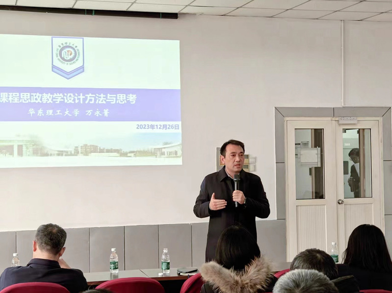 为深入学习贯彻党的二十大精神,提升教师的课程思政教学水平,12月26日下午,机动学院举行全体教职工理论学习,邀请学校教务处副处长万永菁教授作题为“课程思政教学设计方法与思考”辅导报告。机动学院党政领导班子全体成员及全体教师参加学习。学习会由机动学院副院长陈建钧主持。