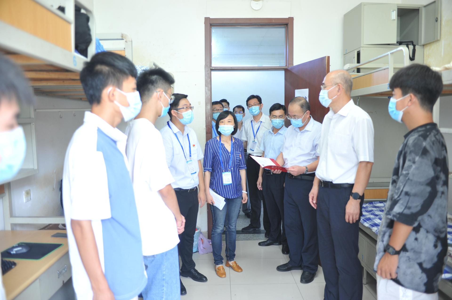 能源214班刘禹京说:“太开心了!与校长合影了,感受到了学校老师对我们的关心和帮助。进入校园,我感受到了学校对疫情防控工作的严谨与认真,出示了健康码、核酸检测报告、录取通知书之后,身穿防护服贴有机电学院logo的学长就迎上来帮我搬运行李,学长十分热情,核酸检测井然有序,做完后乘坐摆渡车,进入宿舍看到桌子上有一本《苦难辉煌》,与同学们观看《开学第一课》《厉害了,我的国》”