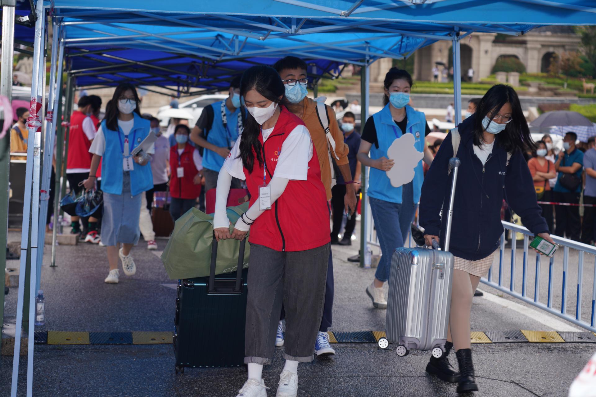 新生张睿航的妈妈送女儿到校门口,原本精挑细选带给孩子的盆盆碗碗现在却成了负担,正在妈妈心里犯难时,志愿者主动将行李接下,并向睿航妈妈耐心解释校园中一路都有志愿者和摆渡车。张睿航妈妈激动地说:“因为疫情原因无法送孩子进宿舍,心中千万个不放心,但是看到志愿者这么热情地帮助孩子拉行李,带她一路有说有笑地走进校园,学校的关怀备至让我对孩子的大学生活安心了不少,更对孩子未来在校园的健康成长充满信心。”