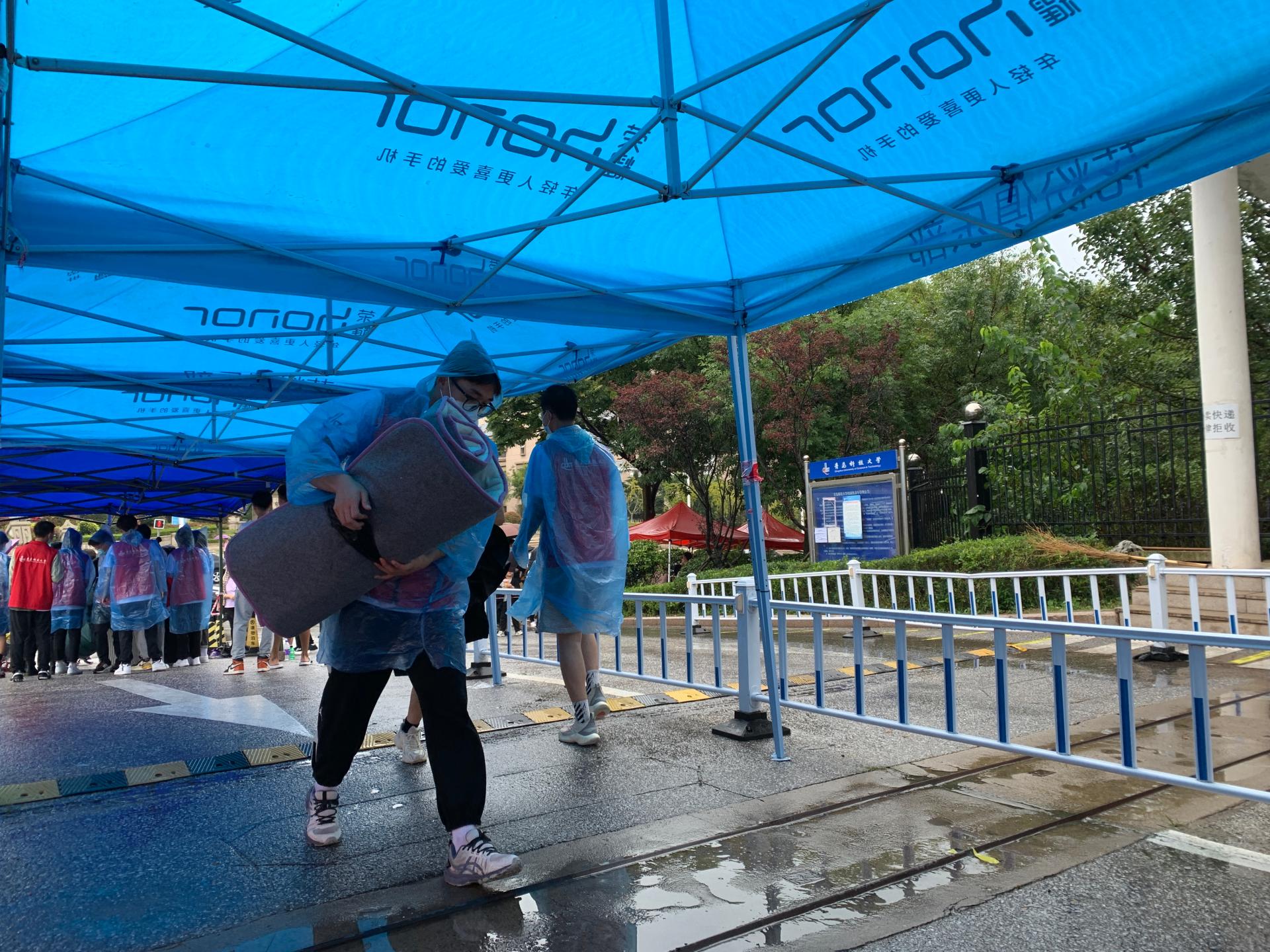 风雨兼程,科大做你避风港湾。9月4日是省内新生报道日,因军训安排报道时间相对集中,平均每小时到校人数高达千人,加之绵绵不断的秋雨,为迎新工作带来极大挑战。一天迎新工作结束,志愿者微信步数纷纷接近3万步,校学生会志愿者张皓越打趣道:“32000步却没进微信步数前15名,真是内卷严重。”“那天常常有人给我递雨衣,但是我们清楚,不知道是雨是汗,身上的短袖早就湿透了,虽然累到极点,但也干的酣畅淋漓。”社团管理部学生骨干杨泽霖说道。应统202班的黄文静早上五点半就和志愿者们抵达校门口,秋雨疾风同新生一起涌入学校,不停地往返穿梭于校门和大巴站两个服务站点,让本就低血糖的她累得差点晕倒,幸亏有服务站点准备的水果糖才让她慢慢回过神来,黄文静说:“虽然很辛苦,但是在志愿者的互相鼓励中、在家长感激的神情中、在学弟学妹的句句感谢中,我会铭记每个坚守的日夜,这是成长留下最美的印记。”